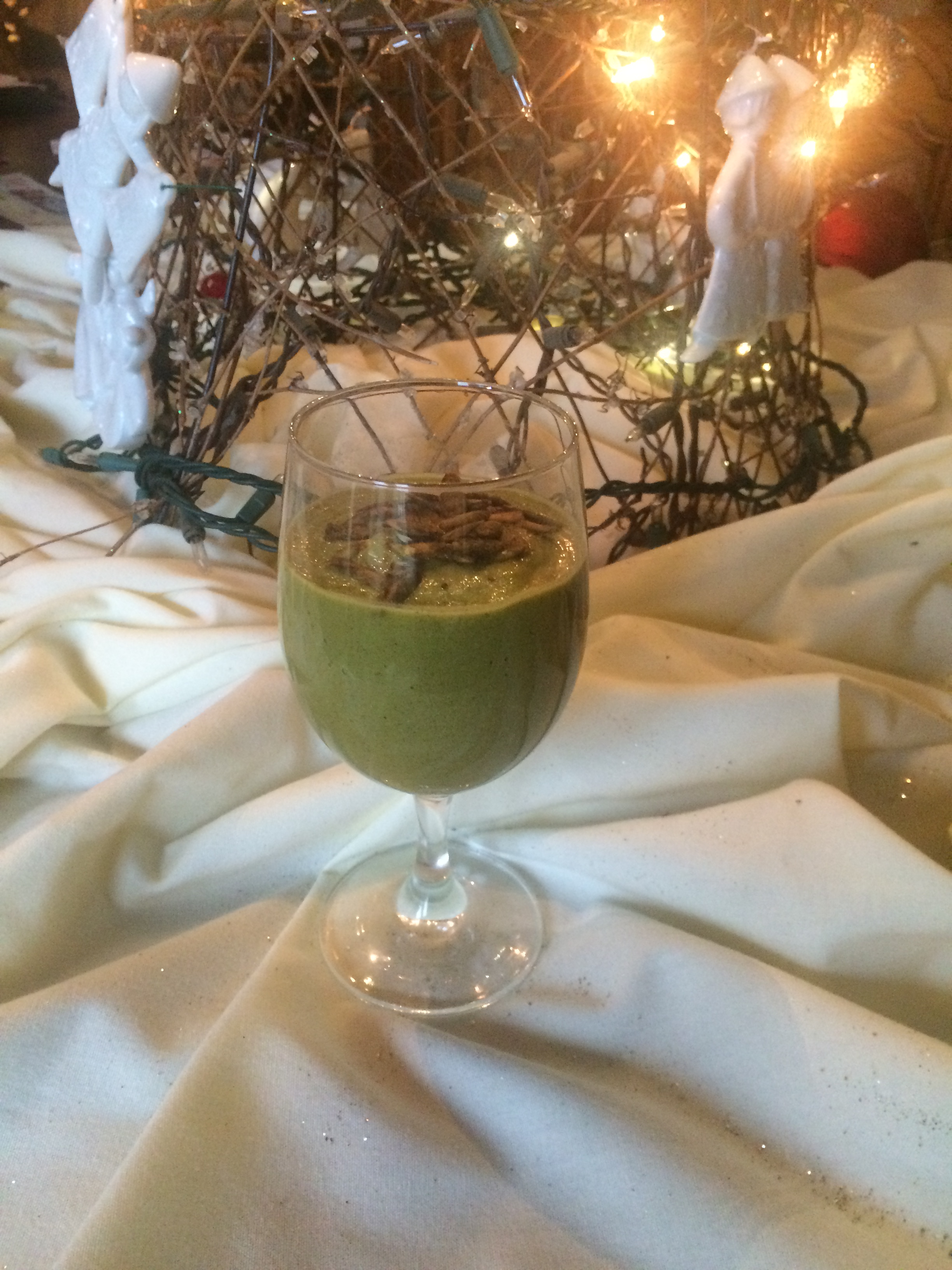 Blend until smooth top with some goat cheese sprinkles, nuts, or savory crispy toppings for texture. Makes a huge pitcher full. This can be chilled in refrigerator and used the next two days. If it gets too thick, I just add a bit of coconut water.